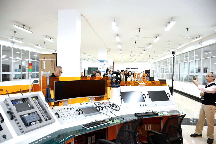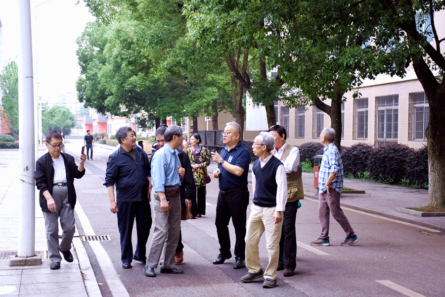 64级老校友们在李宇飞校长陪同下参观学校教学实训基地和校园风光