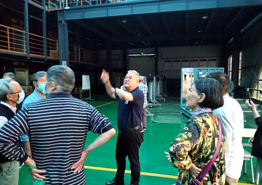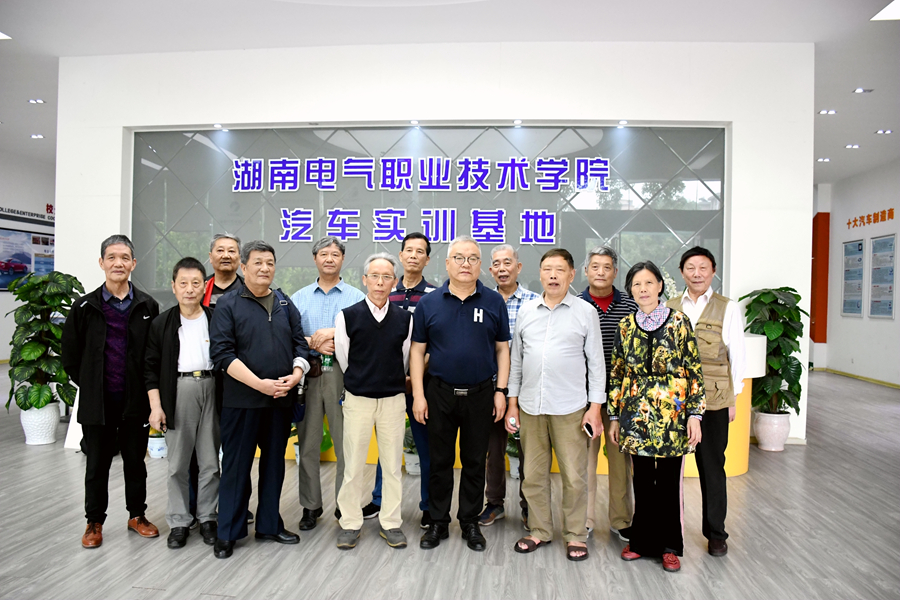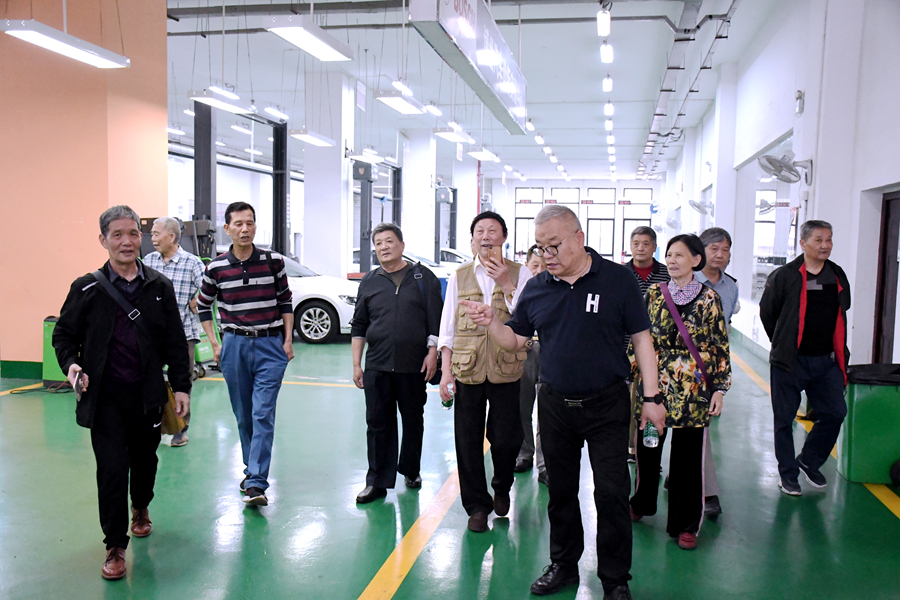 64级老校友们在李宇飞校长陪同下参观学校教学实训基地和校园风光